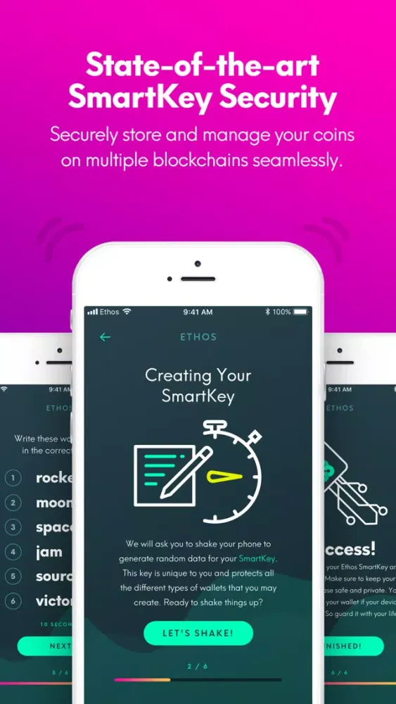 STATE-OF-THE-ART SECURITY - No more managing multiple private keys and wallets. With the Universal Wallet, you generate a single Ethos SmartKey for each wallet instance you create, and it takes care of the rest – providing automated maximum security management of all of your digital assets. You remain in complete control at all times. Lose your phone? Simply restore your cryptocurrency wallet and regain control of your funds using your Ethos SmartKey. Self-Custody at its finest!