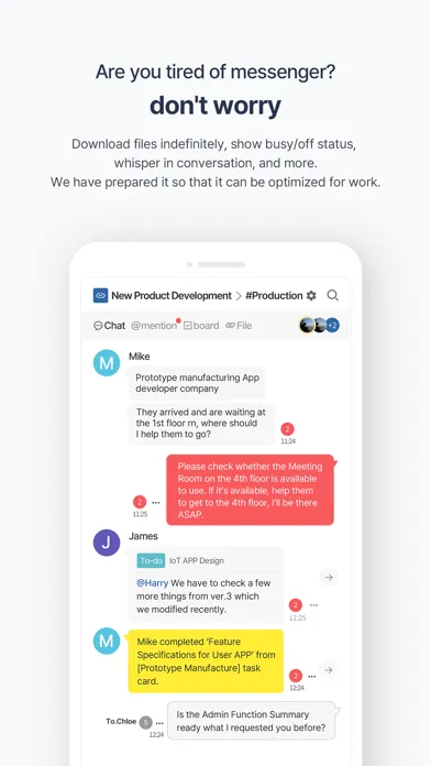 │Indefinite file download, busy/off status display, whisper in conversation, etc.