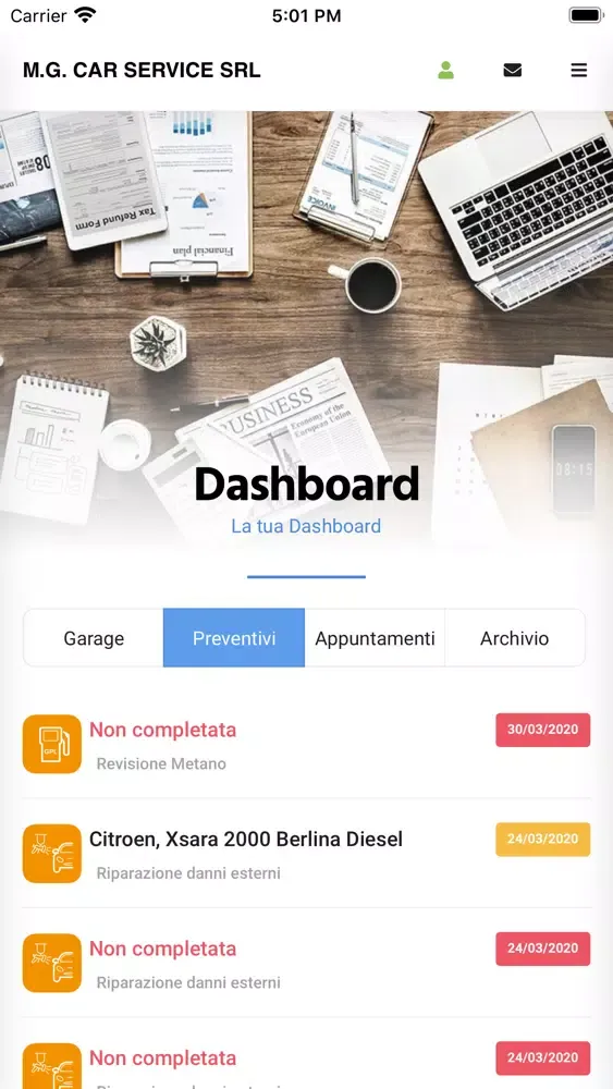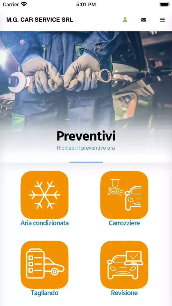 The M.G. App Car Service will take care of your vehicle at any time and in any place. Through the appropriate sections you can request an appointment, a quote or access our active promotions.