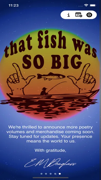 E.M. Douglass Presents Gone Fishin': A Poetry Book, an app that displays poems created by poets E.M. Douglass and Kris. K. We hope to inspire and provide a digital space for creatives of all ages. Using interactive and engaging poetry and illustrations, Gone Fishin': A Poetry Book's gives everyone opportunities to express themselves.