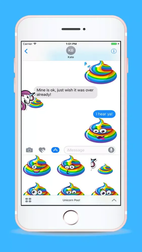 This cute and fun Animated Unicorn Poo themed sticker app is just what you need to cheer up your friends, share your love of unicorns or even better...your love of Animated Unicorn Poo!! Never worry, we keep lots of Unicorn Poo in stock so you are sure to never run out. Update often, as we like to add more poo from time to time.