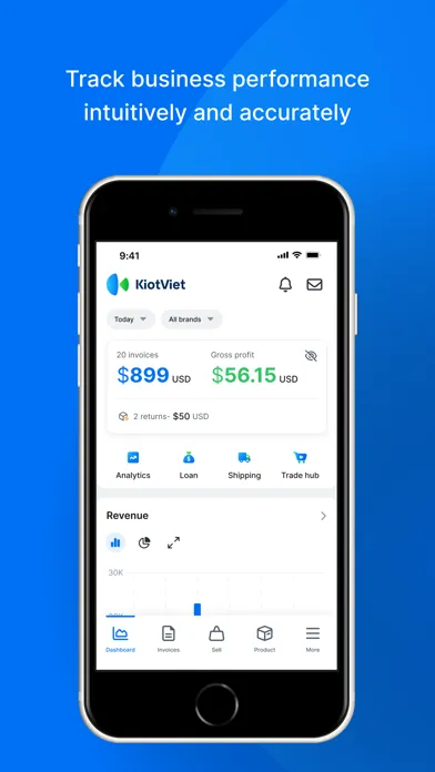 KiotViet Management helps the owners of retail stores, restaurants,... track the efficiency of their business performance in a quick, simple and accurate way. By installing this mobile app, the store owners can supervise and manage all transactions, revenue, inventory,... anytime, anywhere.