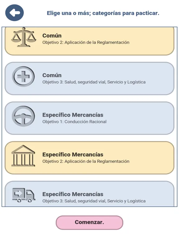 - Puedes practicar todas las preguntas o realizar exámenes completos (generados aleatoriamente o predefinidos).