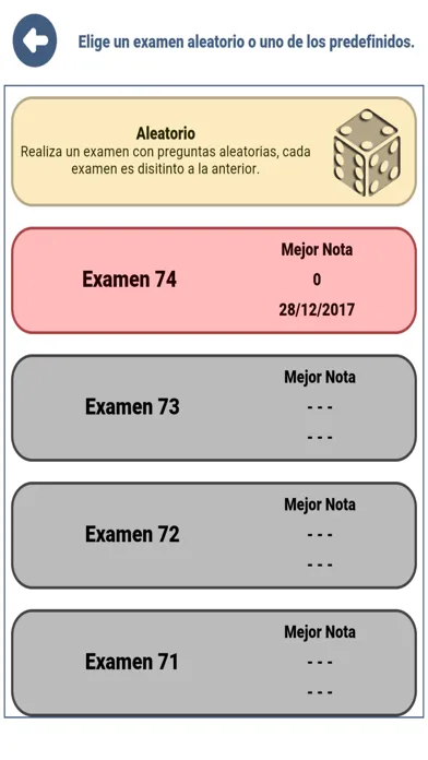 - Realizar exámenes generados aleatoriamente, con la misma estructura que los exámenes reales. Al ser generados aleatoriamente tienes infinitos exámenes a tu disposición, todos ellos distintos entre si.