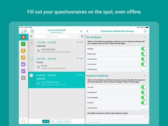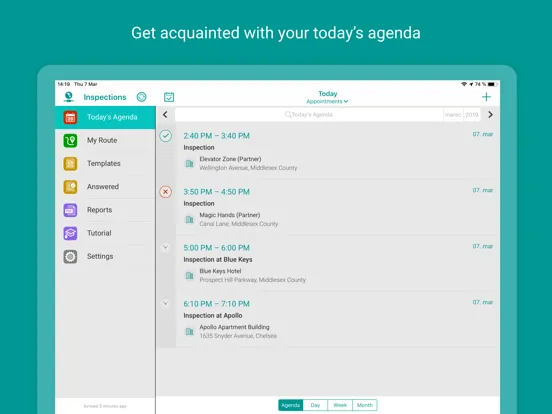 The Resco Inspections app enables you to receive work orders and inspection questionnaires instantly. Navigate to the destination with the built-in route planning. Run and complete inspections on any device, even offline. Afterwards, review and send inspection reports to the back office or customers, and see your performance overview.