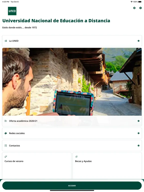 • Información de la universidad: Consulta toda la información sobre la UNED (eventos, noticias, oferta educativa, accesos…).