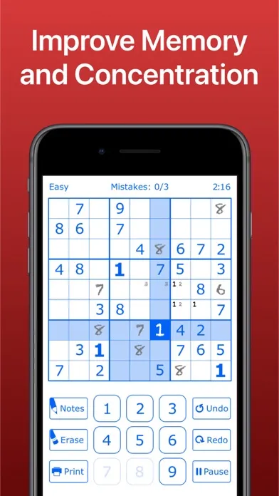 Sudoku Flow provides loads of fun 9x9 Sudoku puzzles! Improve your focus and your working memory while challenging yourself with this number placing puzzle.