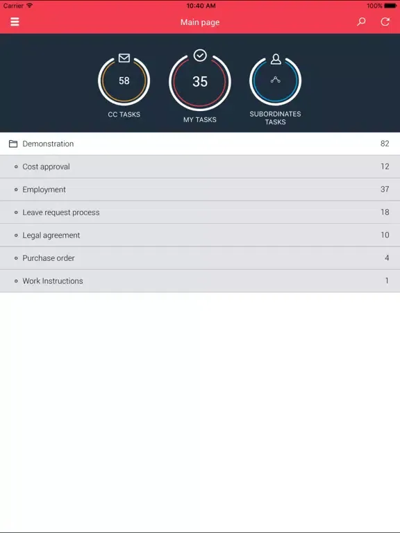 The application connects to document management/BPM system based on WEBCON BPS, allowing you to browse, accept or reject pending requests, orders, invoices, agreements and workflow tasks, as well as access your scanned incoming correspondence, also when you’re out of office, directly on your mobile device!