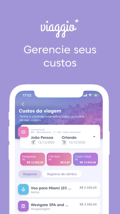 Viaggio é um aplicativo para facilitar o planejamento de suas viagens na palma da sua mão. Traz consigo uma gama de funcionalidades para que você nunca mais precise utilizar o excel ou caderninho.