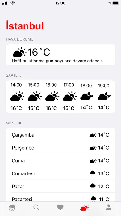 Techous Flow'da bulunduğunuz konumun güncel, saatlik ve günlük hava durumunu görüntüleyebilirsiniz.