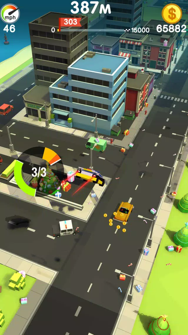 Drive as far as you can. Increase your speed with the aid of boosters. But don’t forget to change the gear, otherwise you will break down your car in many pieces. Use Nitro to drive faster and get more coins. Upgrade your car and beat your own records. Can you reach 50 000 meters?