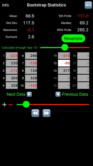 The iPad version allows for more resampling latitude and enhanced data entry. Another feature is the ability to add, retrieve, reorder, or delete data sets.