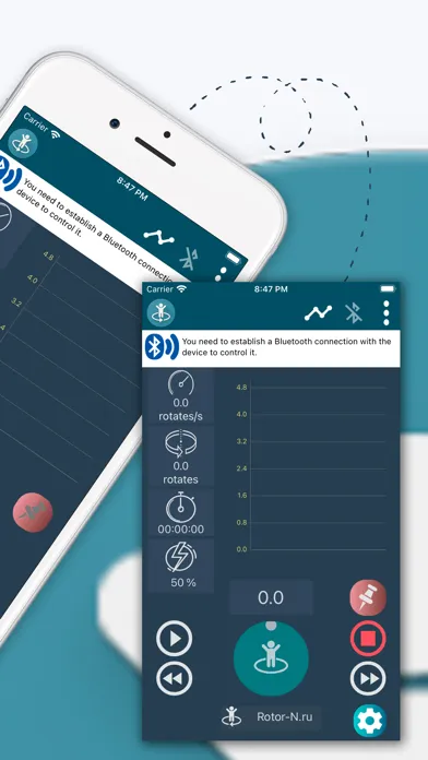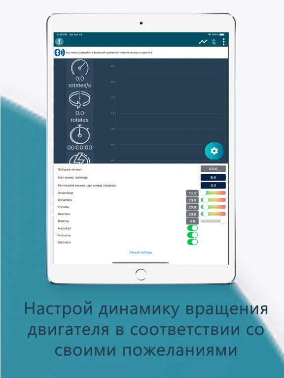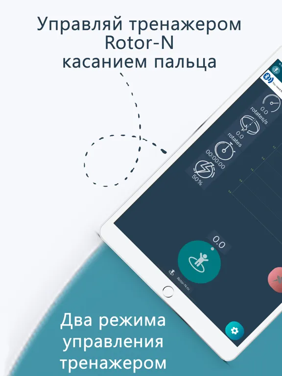 Приложение является пультом управления тренажером 'Rotor-N'. Это устройство представляет собой круглую платформу с электроприводом. Вращаясь на платформе тренажера спортсмены тренируют вестибулярный аппарат.