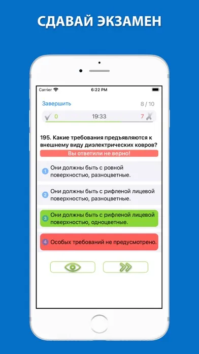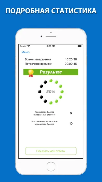 • Работа над ошибками - в режимах "Экзамен", "Марафон" и "Тренировка в избранном" Вы можете сделать работу над ошибками.