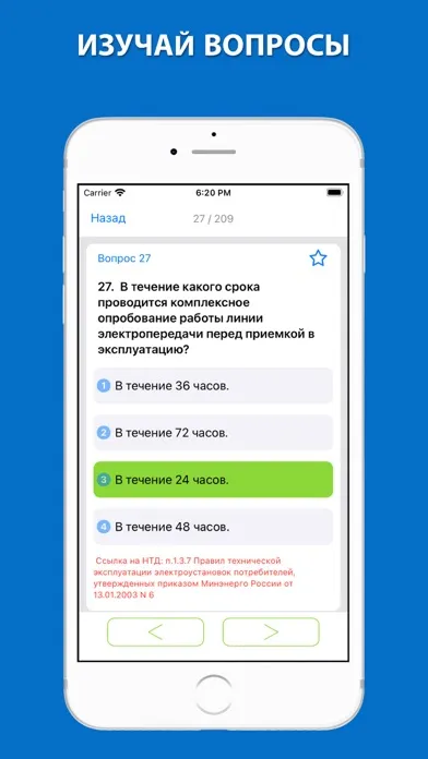 • Подготовка - Позволяет изучить вопросы в текстовом формате с отмеченными правильными ответами;