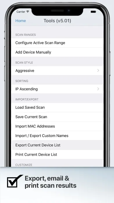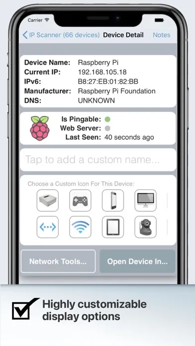 Whether you’re a casual home user or a network professional, IP Scanner Ultra is all about customizing the way you view and analyze your network. You may apply custom names and icons to the devices on your network and adjust the type and amount of information you see in the network overview; don't need to see the MAC address column... don't display it! Text too small... make it larger! We also include a whitelist feature that lets you filter out known and trusted devices to reveal new or unexpected ones, a great way to easily identify unwanted network visitors.