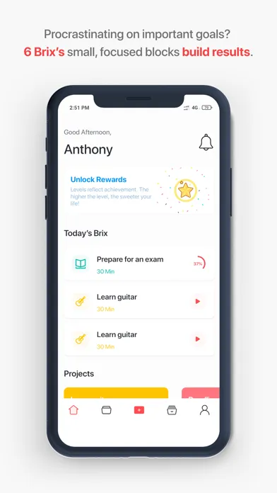 6 Brix is a new way to help you stop putting off life’s goals - big and small. Procrastination doesn’t have to cheat you out of your life’s work. Small steps + consistent effort = SUCCESS! Whether you’re working on your dissertation, dreaming of actually writing that novel, learning an instrument, or just developing a daily exercise habit, 6 Brix helps you get it done. You define the big goals in YOUR life, and 6Brix helps you set aside time each day to make progress on them.