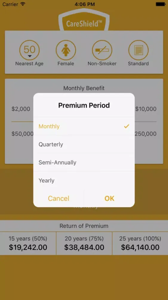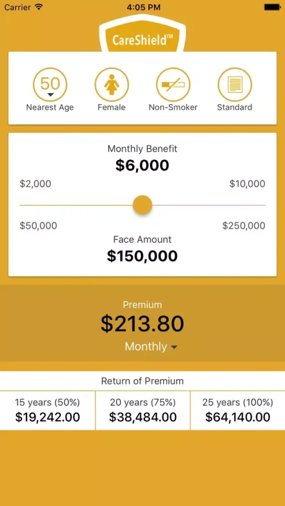 Quickly look up premium rates for CareShield from Minnesota Life. Select your client's nearest age, gender, tobacco use, and standard/preferred rate, then set the desired benefit and instantly see the premium and return of premium values. For producer use only.