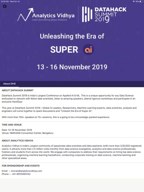 We are excited to announce the 3rd edition of DataHack Summit 2019 - Largest Conference In Applied Artificial Intelligence & Machine Learning. DHS2019 is bringing together futurists to achieve super artificial intelligence. This is a unique opportunity to listen to AI & ML Experts, network and mingle and attend rigorous workshops.