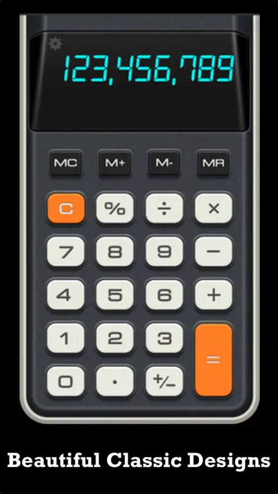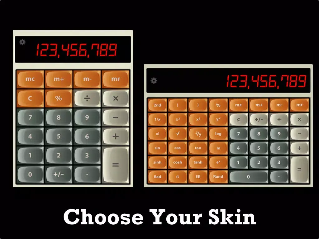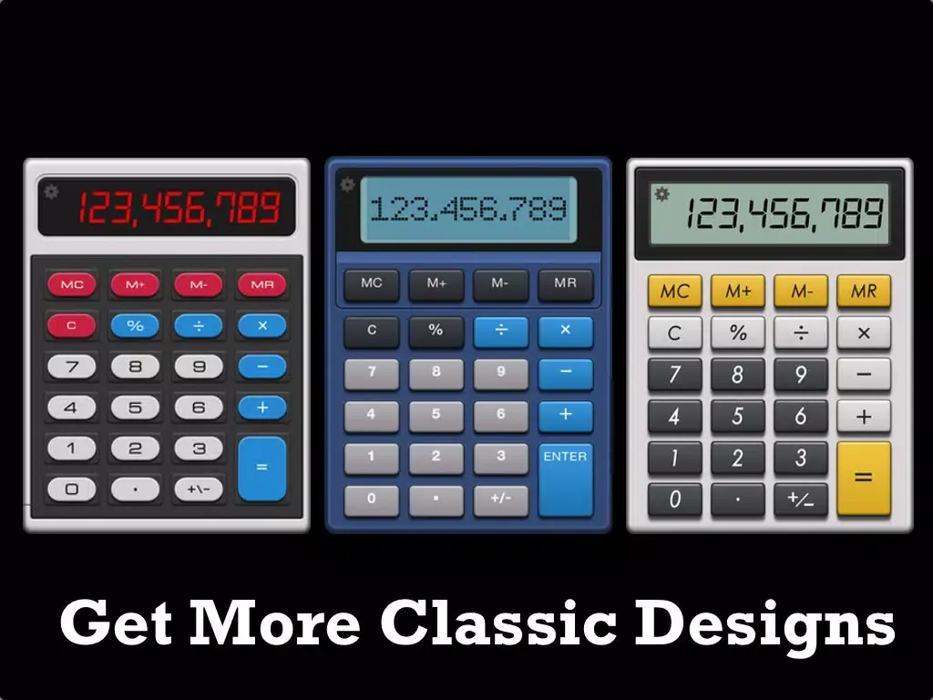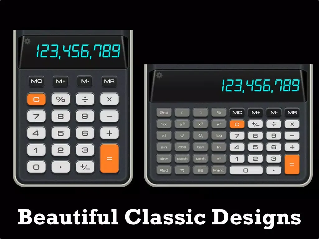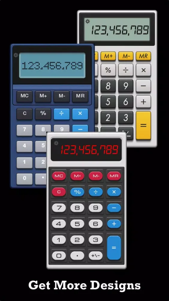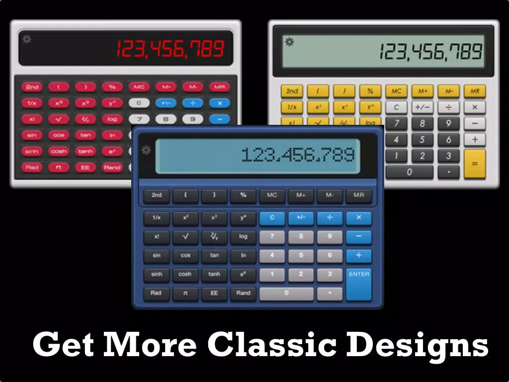 - Free version includes two classic calculator designs (see the first two screenshots)