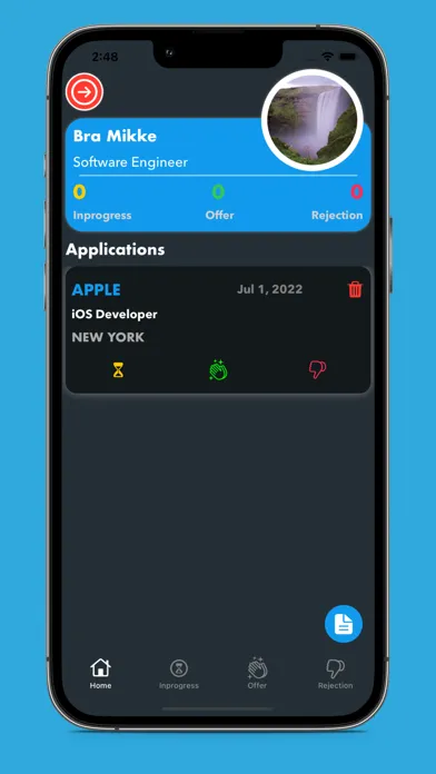 For example: If you hear back from a recruiter to schedule an initial phone interview after submitting your application, tap the " Yellow hourglass button" to put your application status to Inprogress. Through this process, only two things can happen: either you get an offer or rejection.