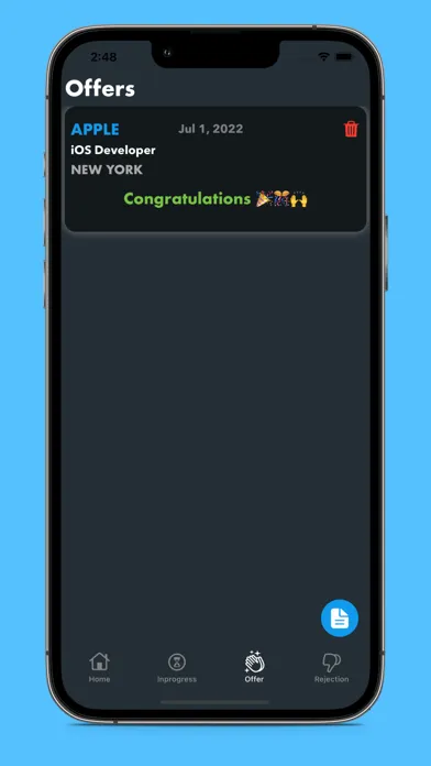Offer : Tap the "Green sparkles button" to change the application status to Offer