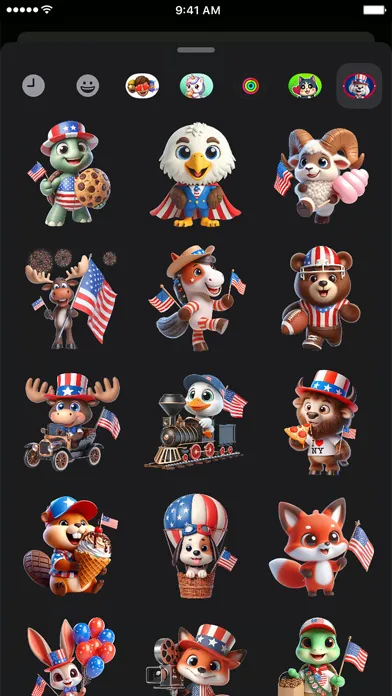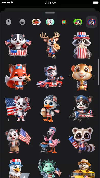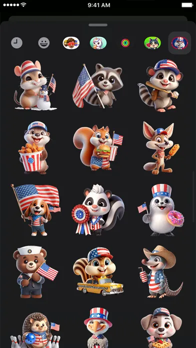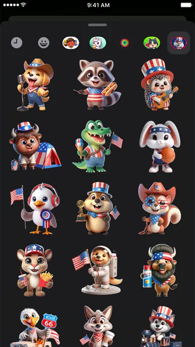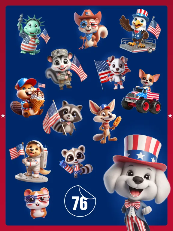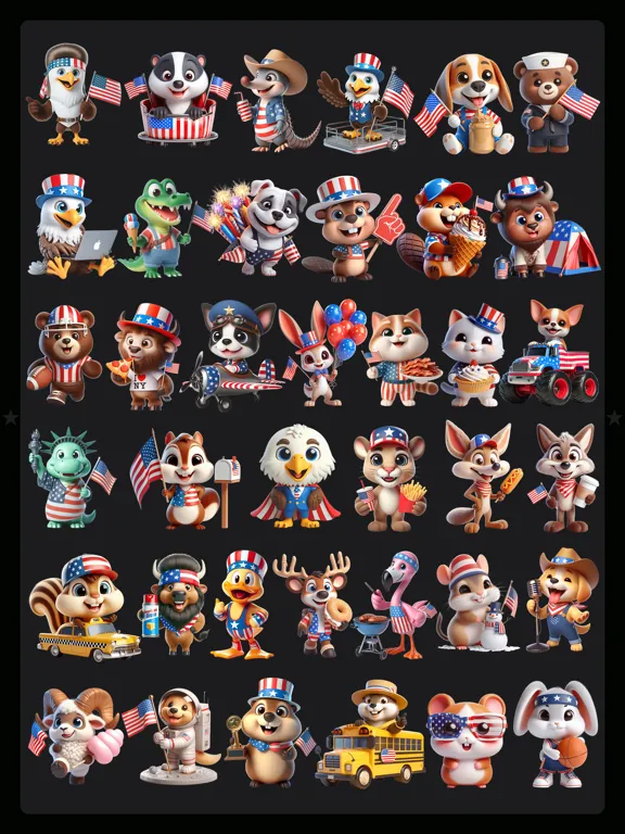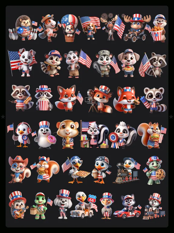 U.S.A Animal character stickers celebrating The United States of America in proud American scenes.