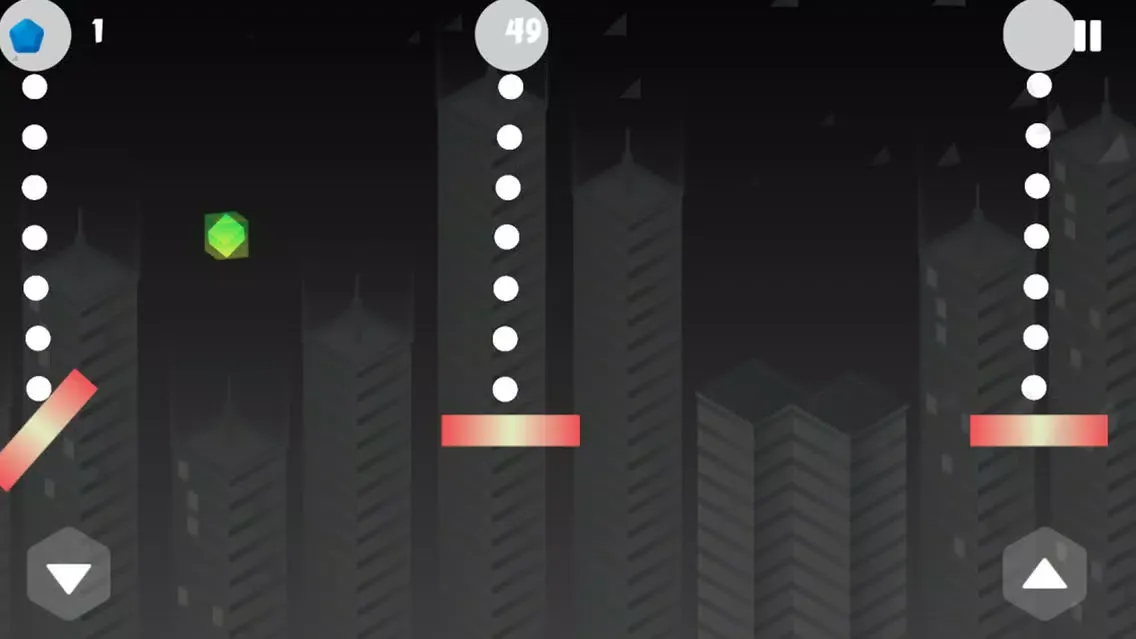 Running on a neon platform in the space with a dark background that having falling buildings.