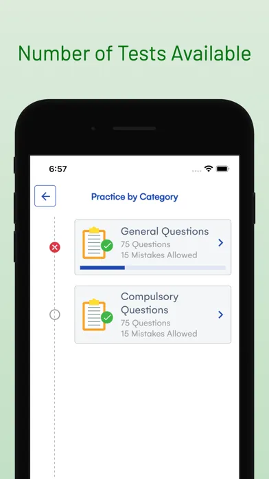 - You can track how many questions you have done correctly, incorrectly, and get a final passing or failing score based on official passing grades