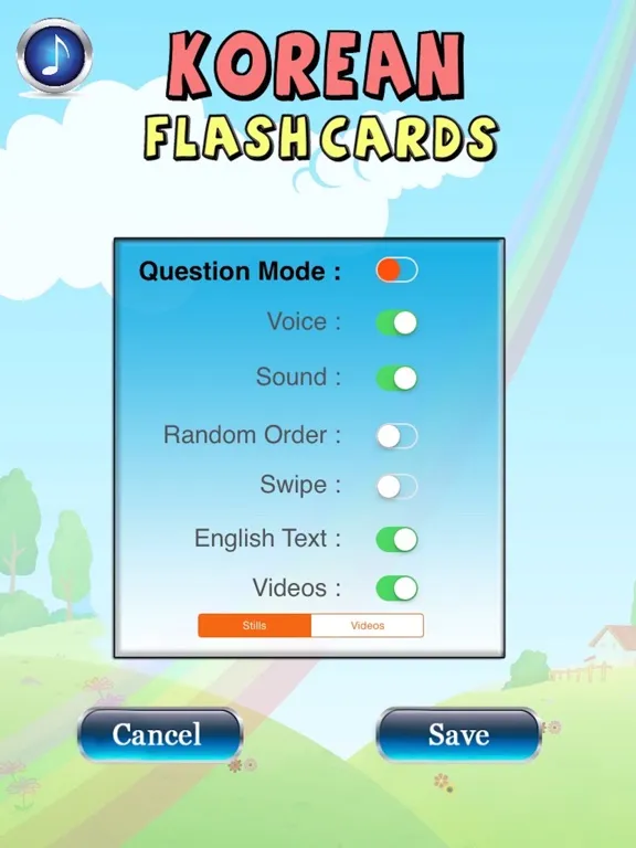 Building strong Korean vocabulary has never been so exciting for preschoolers and toddlers. EFlashApps Korean Educational Baby Flash Cards features over 500 high quality images with text and voice-overs. There are additional real sounds where applicable (such as a lion's roar or an ambulance siren) to enhance visual and auditory learning and memory simultaneously. Parents have the option to turn voice-overs off during parent-child learning session and turn voice overs on when the child is self-learning. They can enable Question Mode to display 4 images and ask the child to click on the right answer. Complexity of words is perfect for ages 1 to 4 so two or more young siblings can play together and even teach each-other!