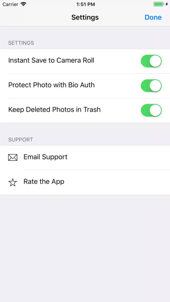 It also supports photo protection with biometric authentication including Face ID and Touch ID. You can use it as self destructive secret photo vault.