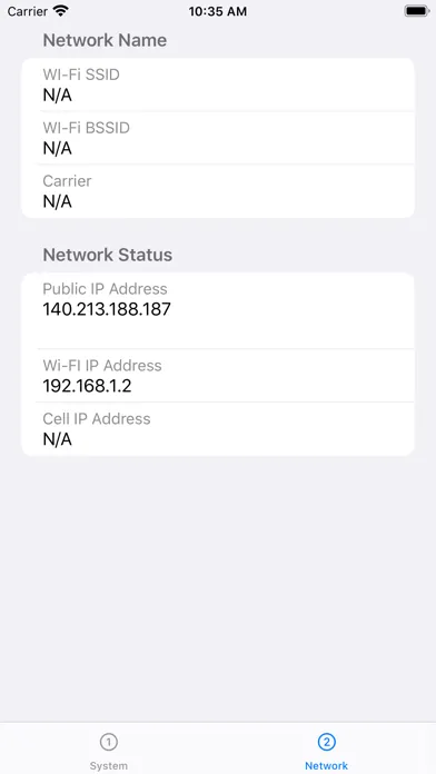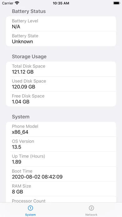 This version displays your device's basic parameters such as battery level, disk usage, and network connections.
