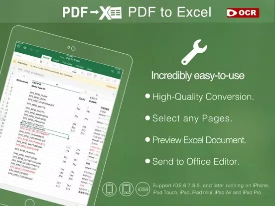 PDF to Excel with OCR iPad Screenshots