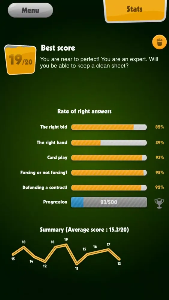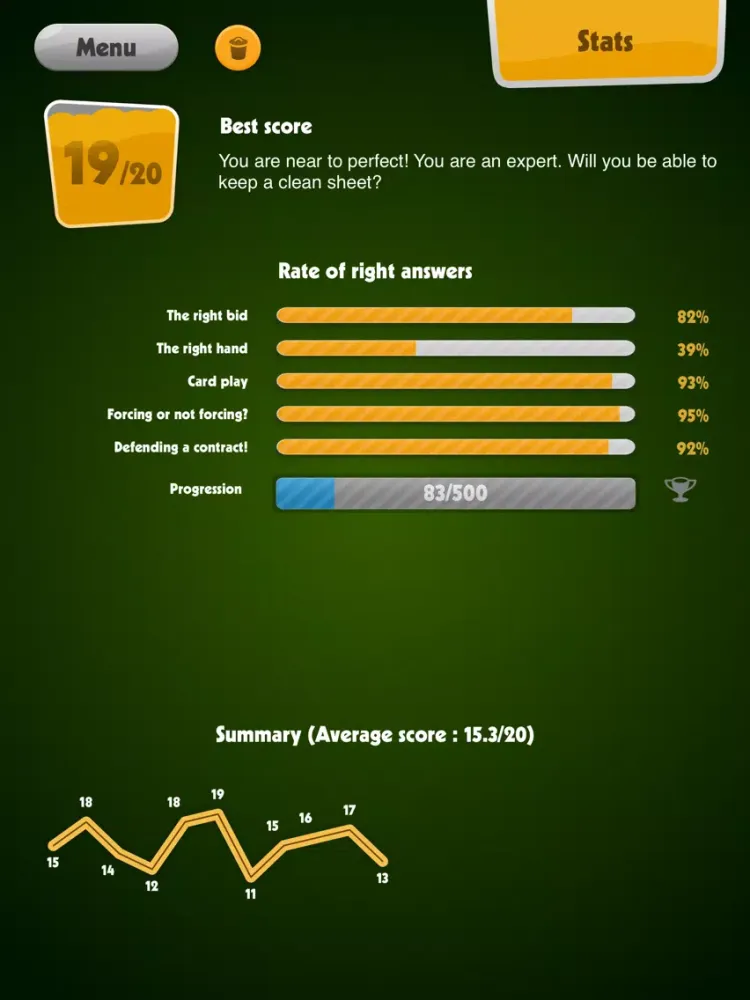 - Statistics of your results and score progress