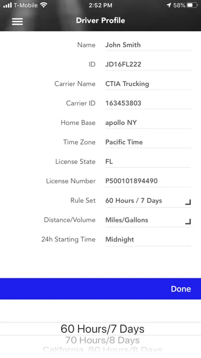 DOT FMCSA self-compliant application to record driver duty status and meet the following regulations: