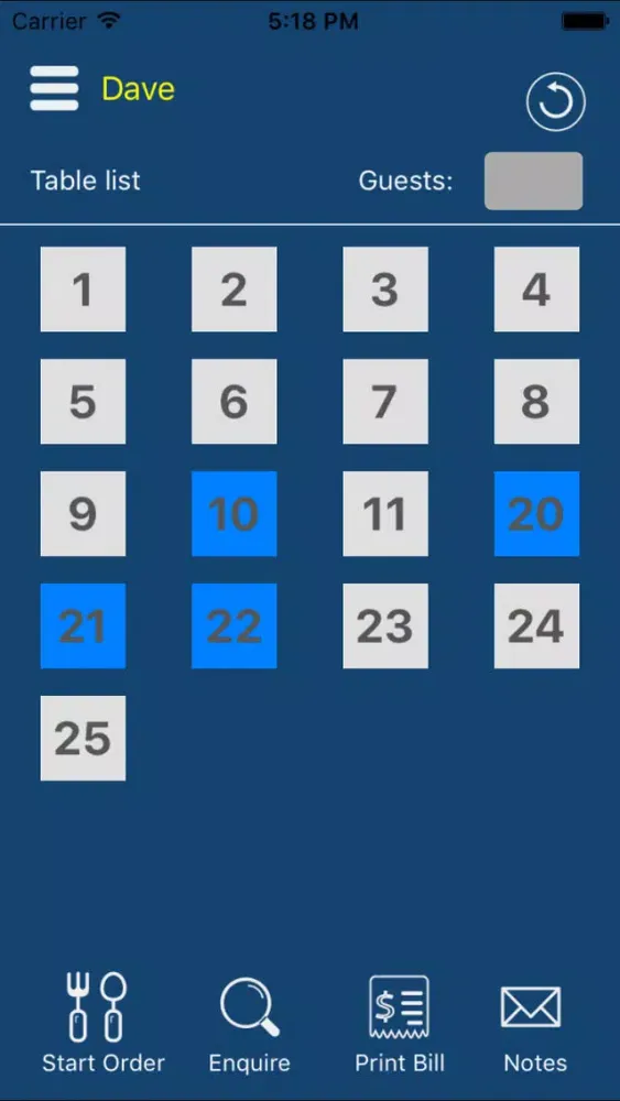 Other functions available on the app are bill printing, table enquiries and viewing notes for specials of the day.