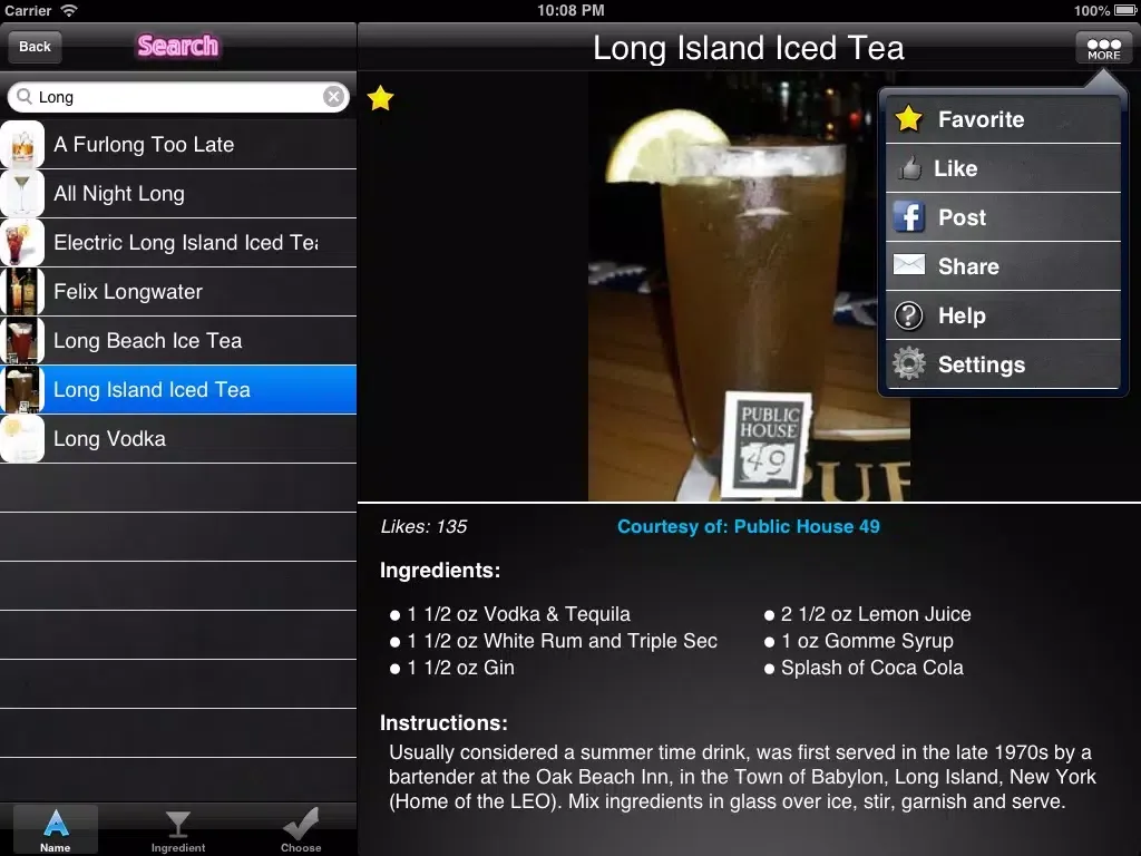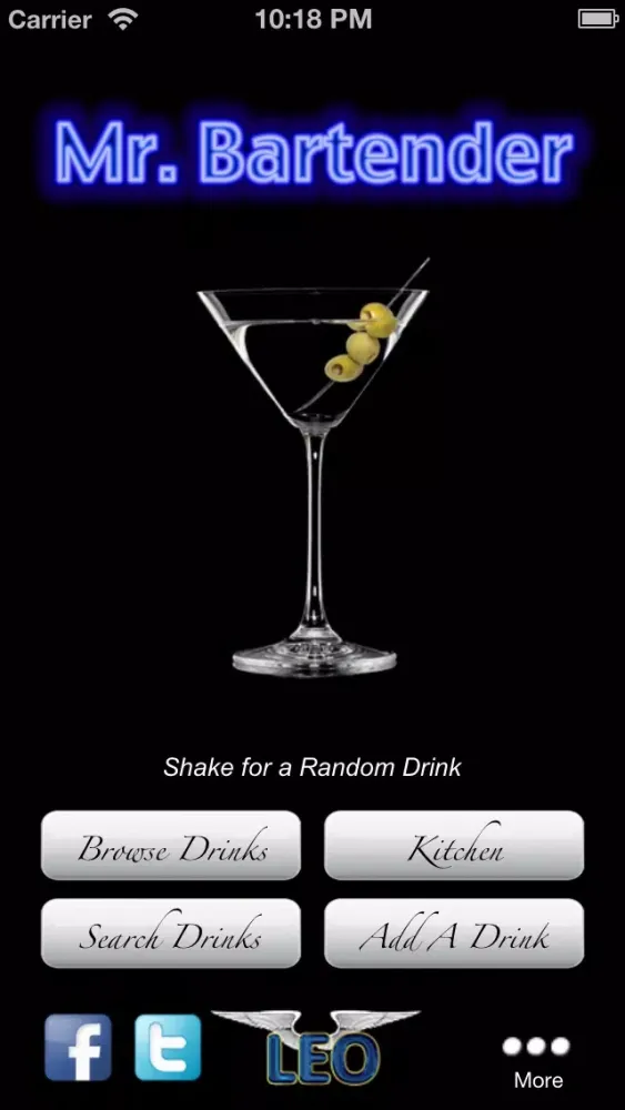 •Search for Drink Recipes using our kitchen feature. Choose what spirits and mixers you have and the Mr. Bartender will tell you what type of mixed drinks you can make.