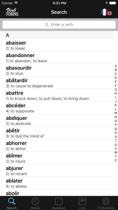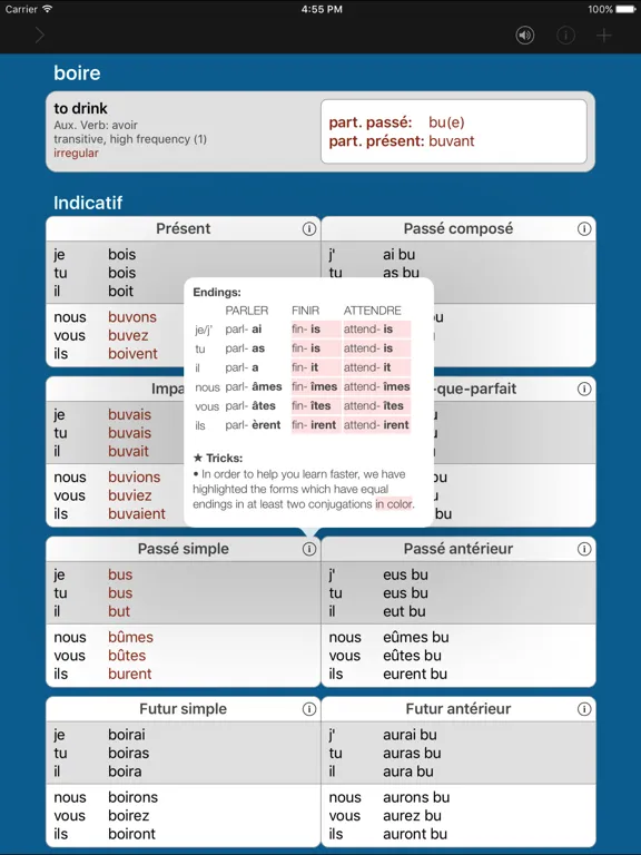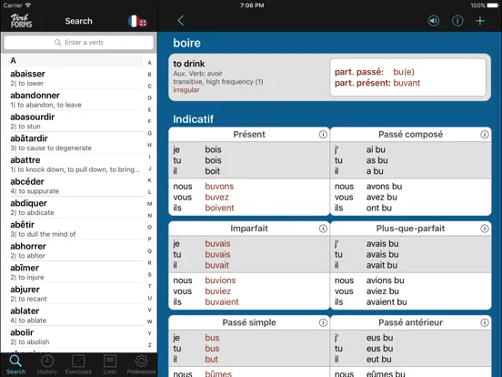 VerbForms Français is the easiest way to learn more than 7500 french verbs and their conjugation.