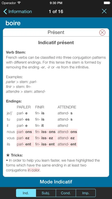 • Enjoy learning the conjugation with the configurable multiple choice, flashcard and written exercises.