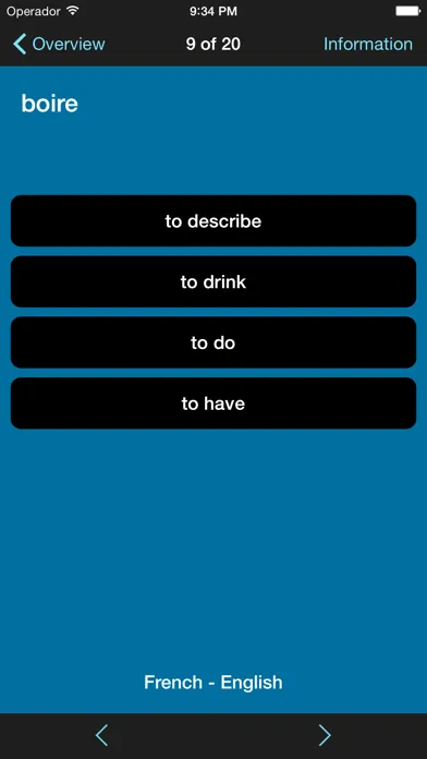 • Automatic error tracking by error lists helps you to keep learning progress under control. Once you successfully practiced a verb it will be removed from the error list.