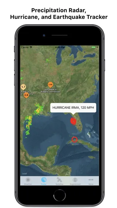 Introducing Radar AR: The most beautiful and accurate Doppler Radar and Weather app, that also shows you Weather conditions around you in Augmented Reality. Simply hold your Device up in the direction of a City or Tropical Cyclone, to see what Weather conditions are like in that area! In addition to our groundbreaking Augmented Reality feature, Radar AR includes a full Local Weather Forecast, Interactive Radar, Full color Satellites, Local Radar, Regional Radar, and more! Local Weather includes Current Weather, a 7 Day Forecast, and an Hour-by-Hour forecast for an unheard-of 168 Hours. If you want to view more information for a Day or Hour, simply Touch it and additional data is unobtrusively displayed. And with our Interactive Radar feature, viewing Animated Precipitation, Earthquakes, and even Tropical Cyclones is literally a breeze.