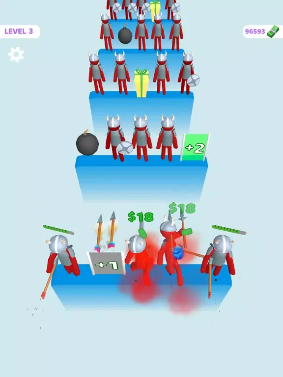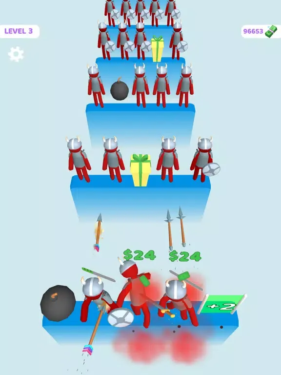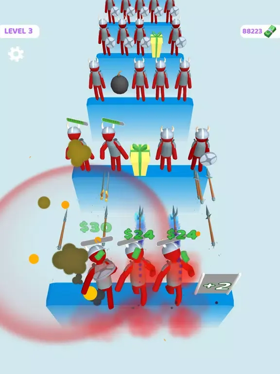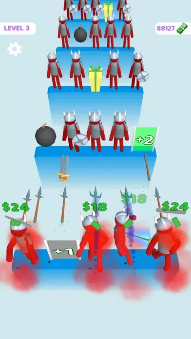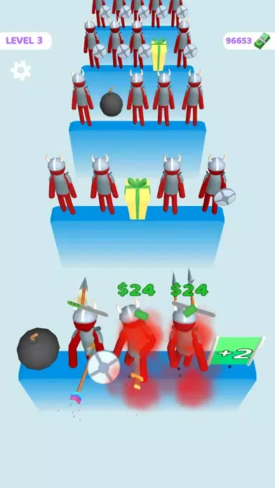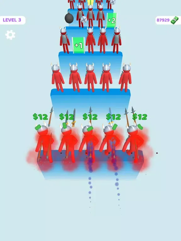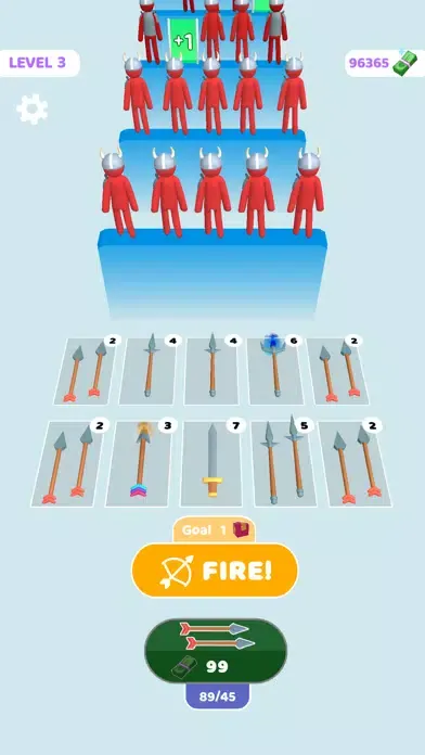 Merge all your weapons and fire them to your enemies! Destroy all your enemies to earn money! With more money, you can improve weapons! Do not forget to merge them or you will fail!