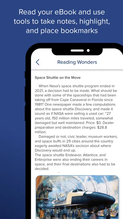 Enjoy a mobile-friendly reading experience in your eBook with easy navigation and helpful viewing tools like pinch, zoom, and text search. Select on-page links to view interactive resources and use the embedded tools (notes, bookmark, highlighter, and even a pen to write on the screen) to stay organized.