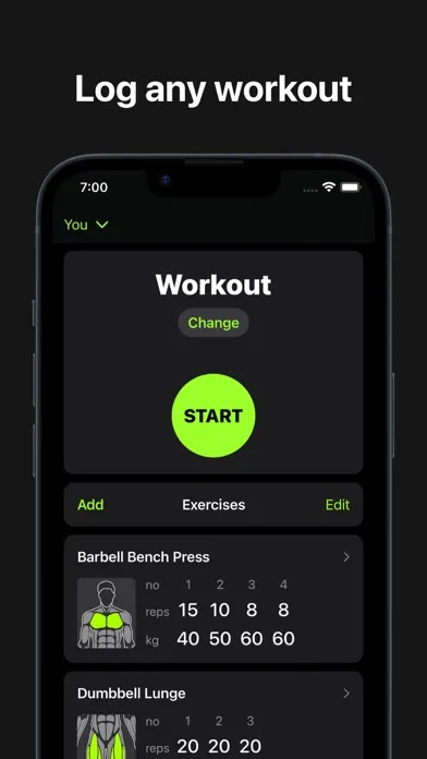 Track your progress. The app will remember the exercises, repetitions and weights that it will substitute for the next