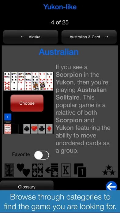 Detailed rules for every game and a glossary of solitaire terms to help you quickly learn to play new games.