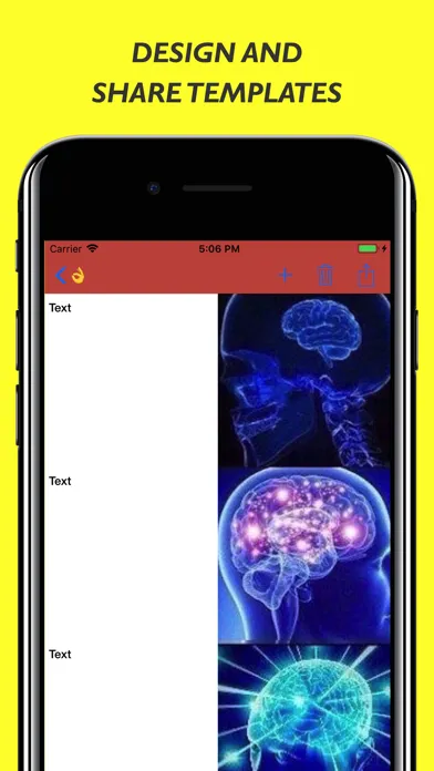 Make and share your own templates with the template designer and eight template blocks. Use the built-in expanding brain template to get started. Create memes and share on Reddit!