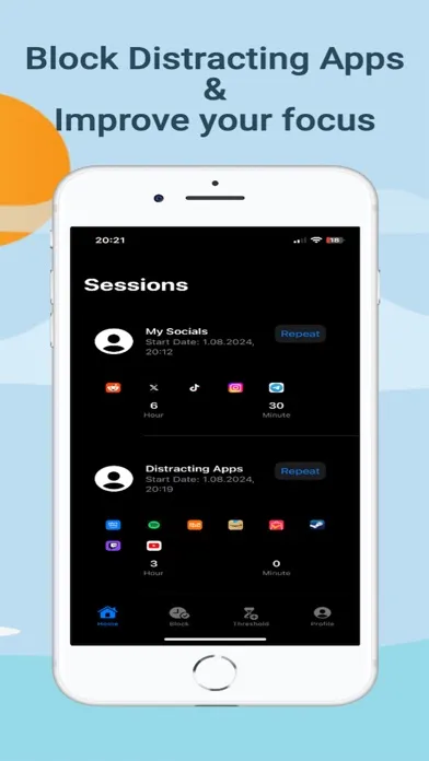 With Limit Socials - App Blocker, you can restrict distracting apps like Instagram, TikTok, Facebook, Reddit, Snapchat, X(Twitter), and more in one tap, putting an end to endless scrolling.