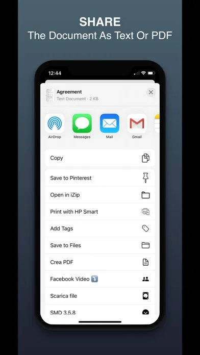 • PDF. All scans are automatically saved as PDF. You can view the PDF from the app and share it with any other app that accepts PDFs. You can also remove the PDF from the app and keep only the text.