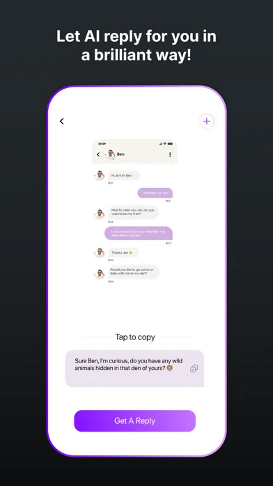 Our AI-powered suggestions are tailored to your preferences, style and the specific conversation. It's like having a smooth-talking virtual wingman by your side at all times.