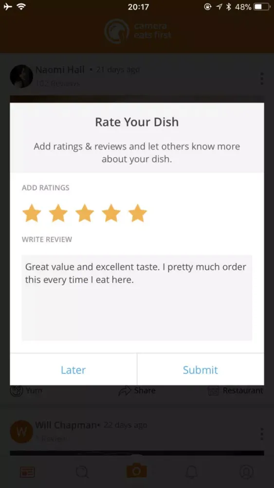 With Camera Eats First, you can: